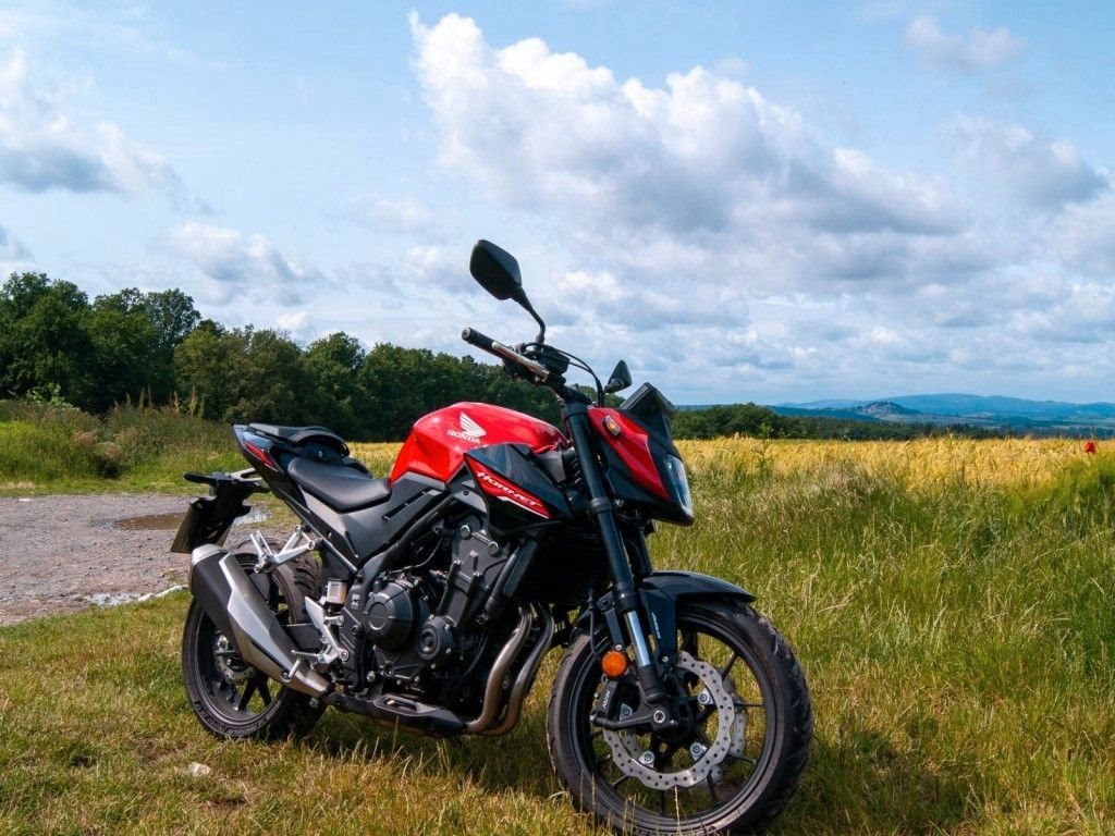 Das für den A2-Führerschein zugeschnittene Halbliter-Naked Bike gesellte sich ab 2024 zur Hornet Modellfamilie, mit neuem, angriffslustigem Styling plus aerodynamischem Feinschliff. Der Zweizylinder mit 471 cm3 Hubraum und 48 PS/35kW Leistung ist neu mit der sicherheitsfördernden HSTC-Traktionskontrolle ausgestattet, dazu trägt ein Update der ECU-Steuerelektronik zu verbesserter Beschleunigung bei. Das Fahrwerk bestücken eine 41mm Showa Separate Function Fork Big Piston (SFF-BP), Showa Federbein mit Pro-Link-Umlenkung und eine Doppelscheibenbremse mit Radial-Vierkolben-Sätteln. Ein LED-Scheinwerfer verbessert die Lichtausbeute. Der neue 5 Zoll TFT-Bildschirm integriert Honda RoadSync-Konnektivität und wird über einen hinterleuchteten 4-Wege-Schalter bedient.