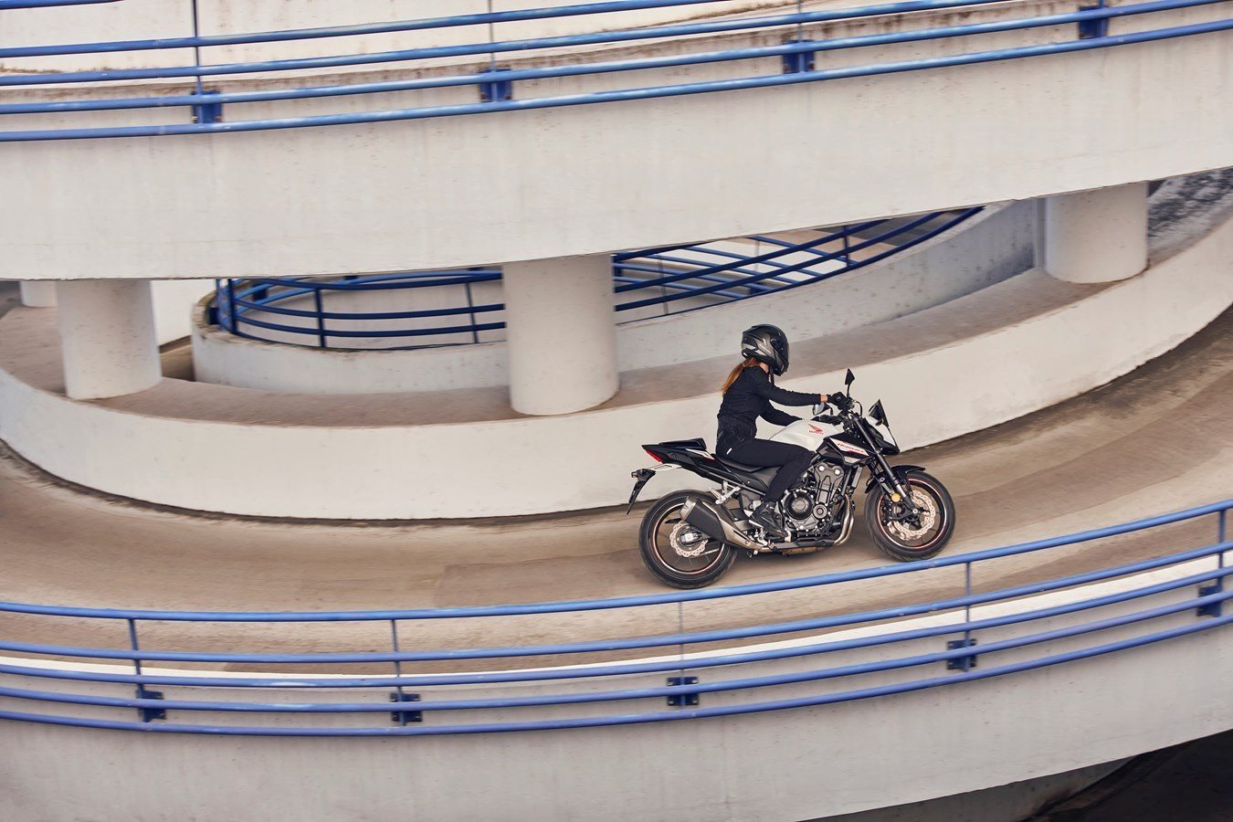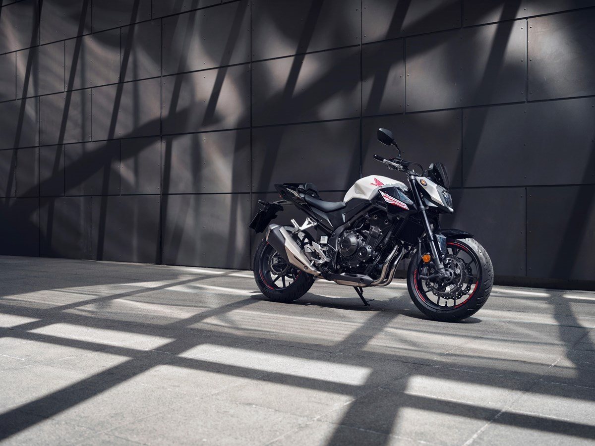 Das für den A2-Führerschein zugeschnittene Halbliter-Naked Bike gesellte sich ab 2024 zur Hornet Modellfamilie, mit neuem, angriffslustigem Styling plus aerodynamischem Feinschliff. Der Zweizylinder mit 471 cm3 Hubraum und 48 PS/35kW Leistung ist neu mit der sicherheitsfördernden HSTC-Traktionskontrolle ausgestattet, dazu trägt ein Update der ECU-Steuerelektronik zu verbesserter Beschleunigung bei. Das Fahrwerk bestücken eine 41mm Showa Separate Function Fork Big Piston (SFF-BP), Showa Federbein mit Pro-Link-Umlenkung und eine Doppelscheibenbremse mit Radial-Vierkolben-Sätteln. Ein LED-Scheinwerfer verbessert die Lichtausbeute. Der neue 5 Zoll TFT-Bildschirm integriert Honda RoadSync-Konnektivität und wird über einen hinterleuchteten 4-Wege-Schalter bedient.