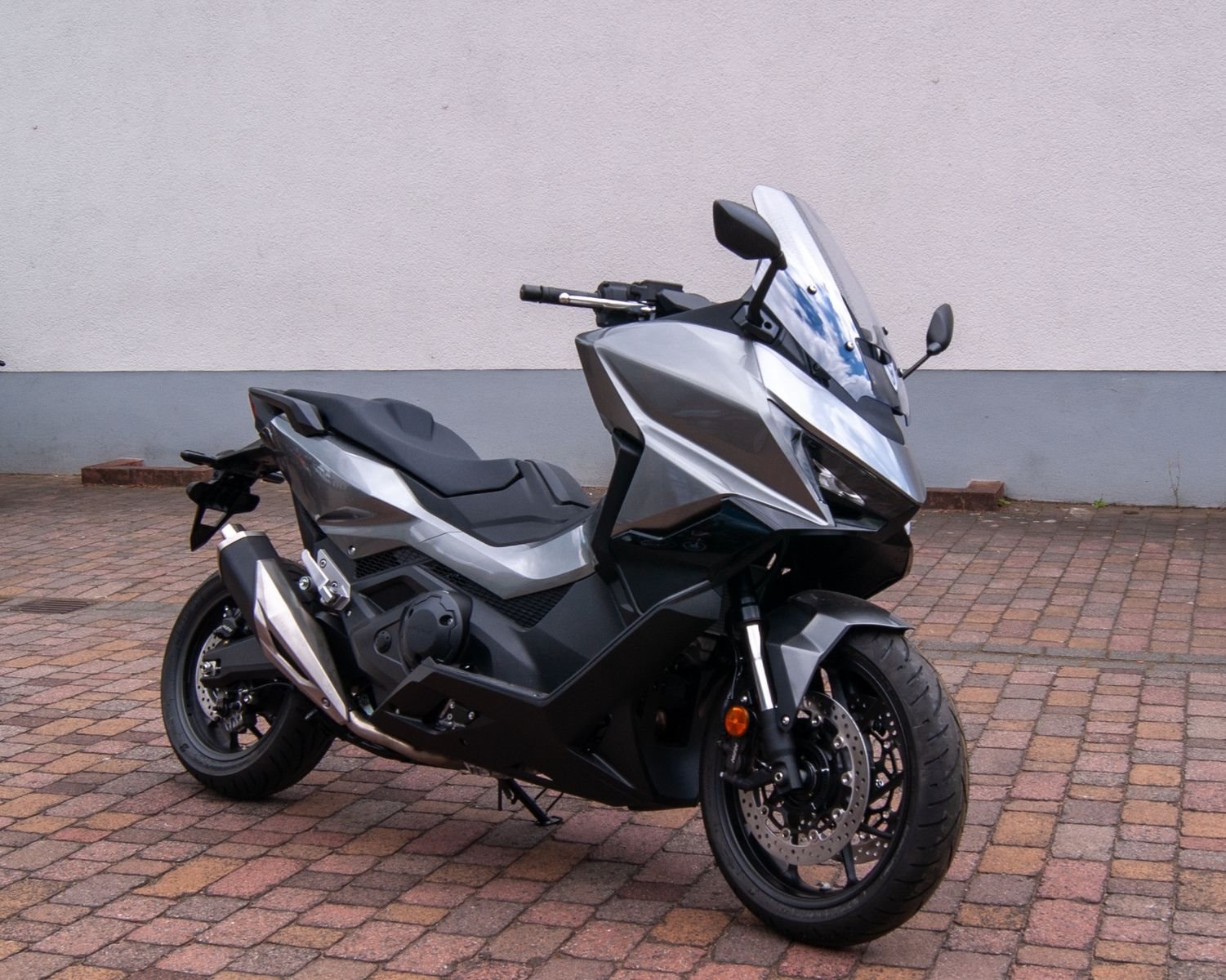 Mit seinem dynamischen 2 Zylinder Motor und neuem markantem Styling mit LED Doppelscheinwerfern und Tagfahrlicht mit Blinkern sowie einem breiterem elektrisch verstellbarem Windschild macht dieser Roller überall eine gute Figur-in der Stadt,auf der Landstraße unhd auf der Autobahn.