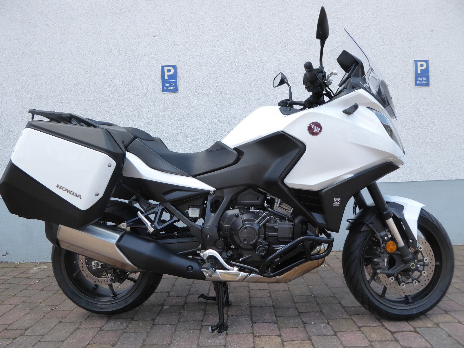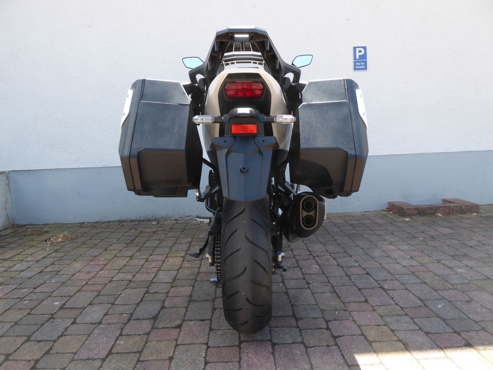 Das Modell verfügt über serienmäßige Seitenkoffer sowie Griffheizung und Motorschutzbügel.
