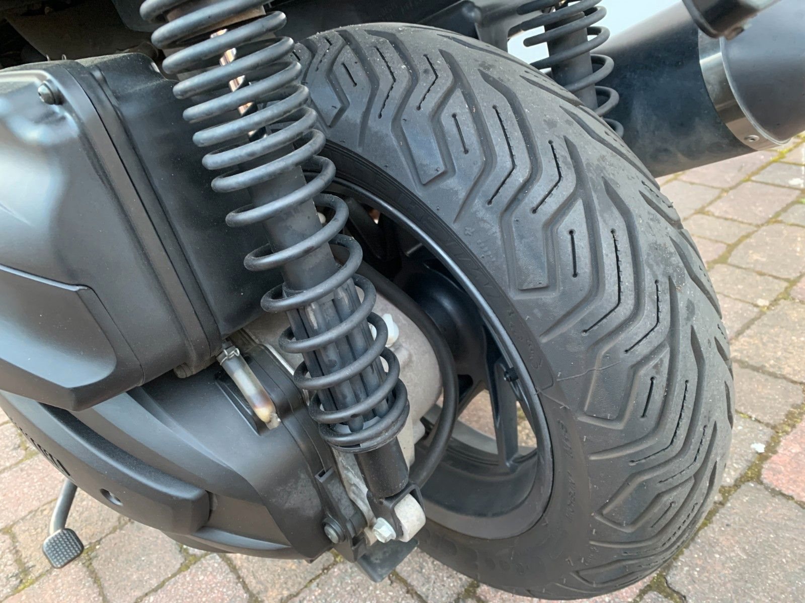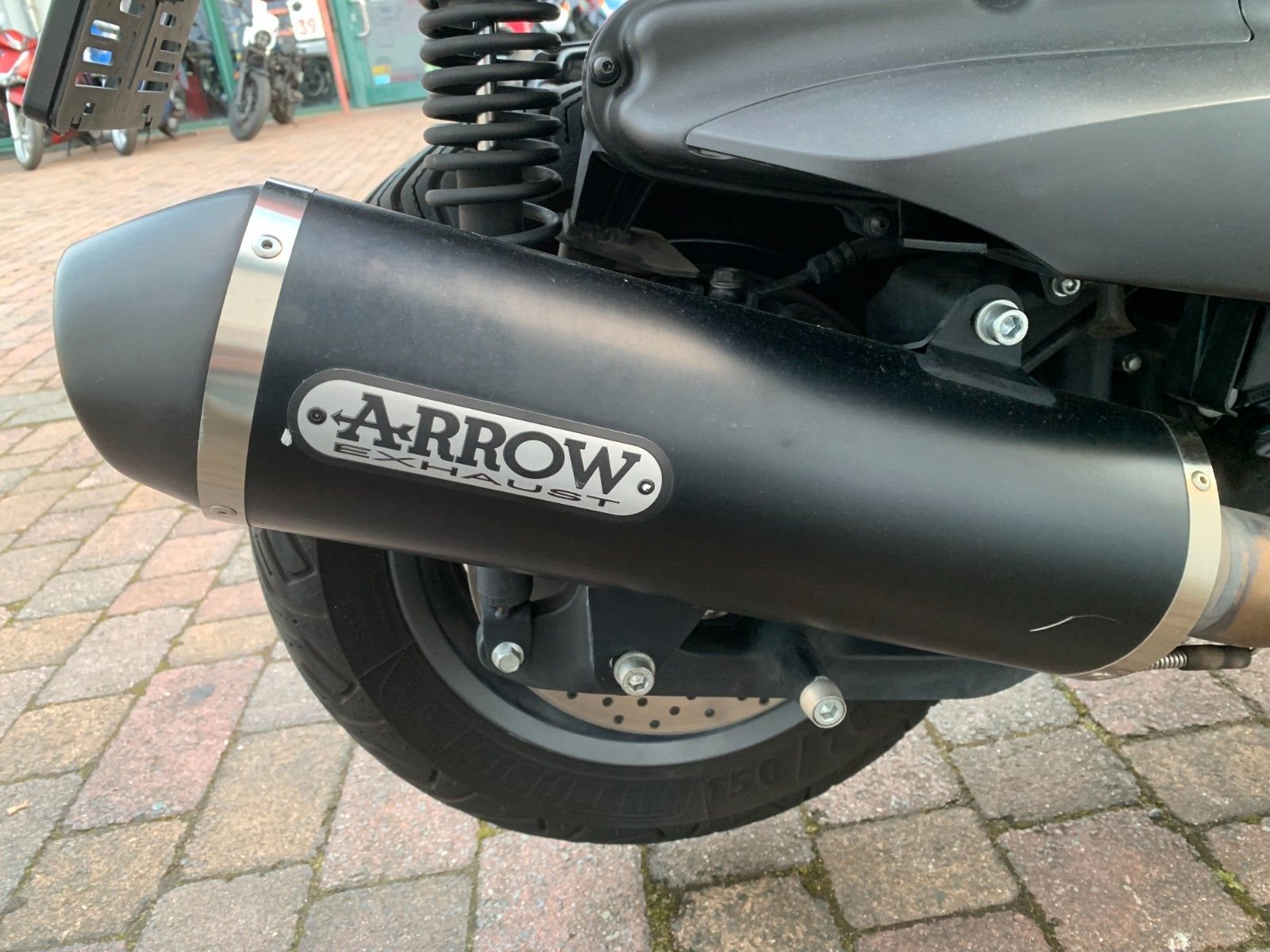 Das Fahrzeug verfügt über Griffheizung, Lenkerendspiegel, Sportscheibe und kurzes Heck.