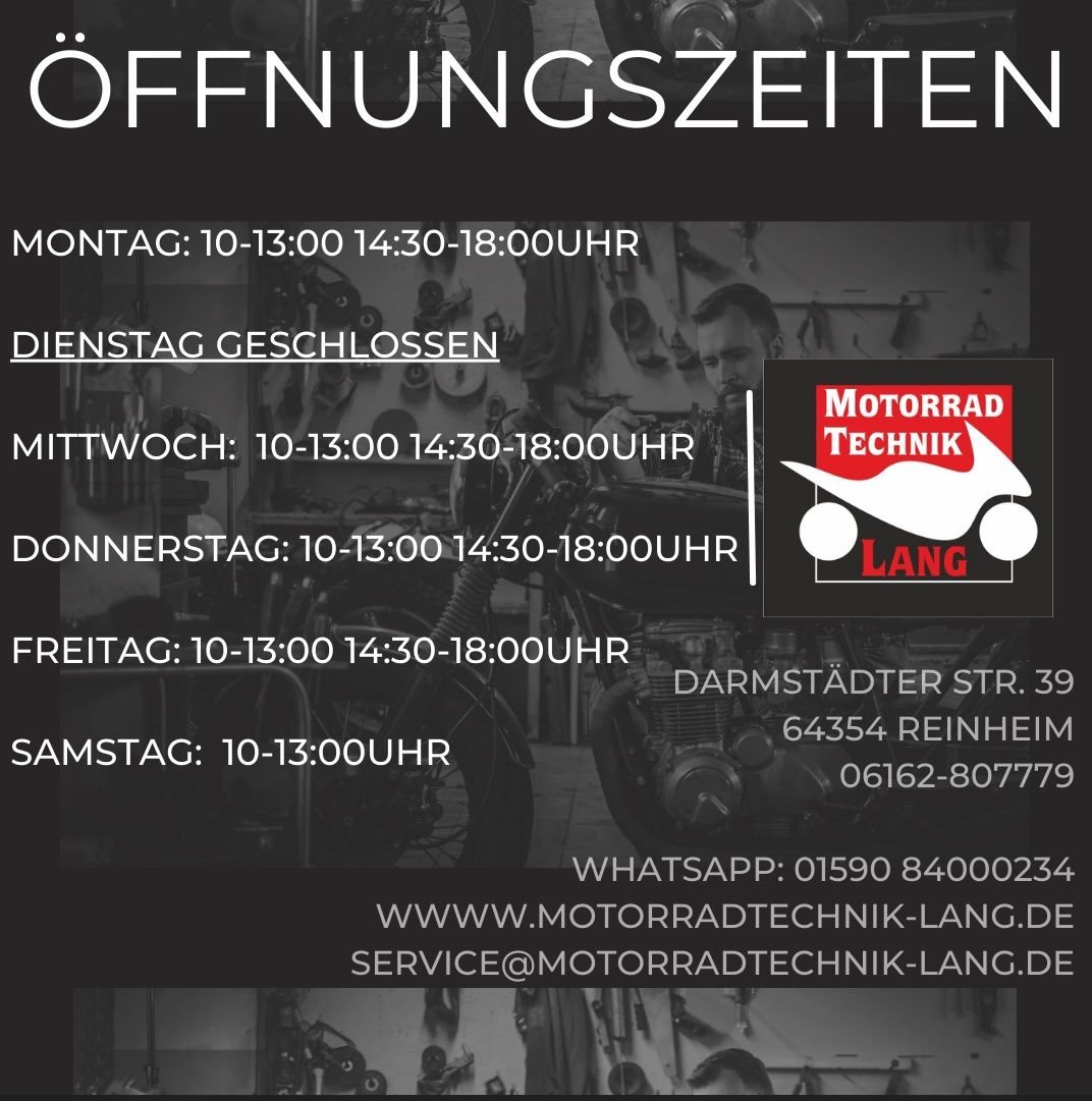 Kontaktiere uns einfach unter 06162 - 80 77 79 oder per mail : service@motorradtechnik-lang.de