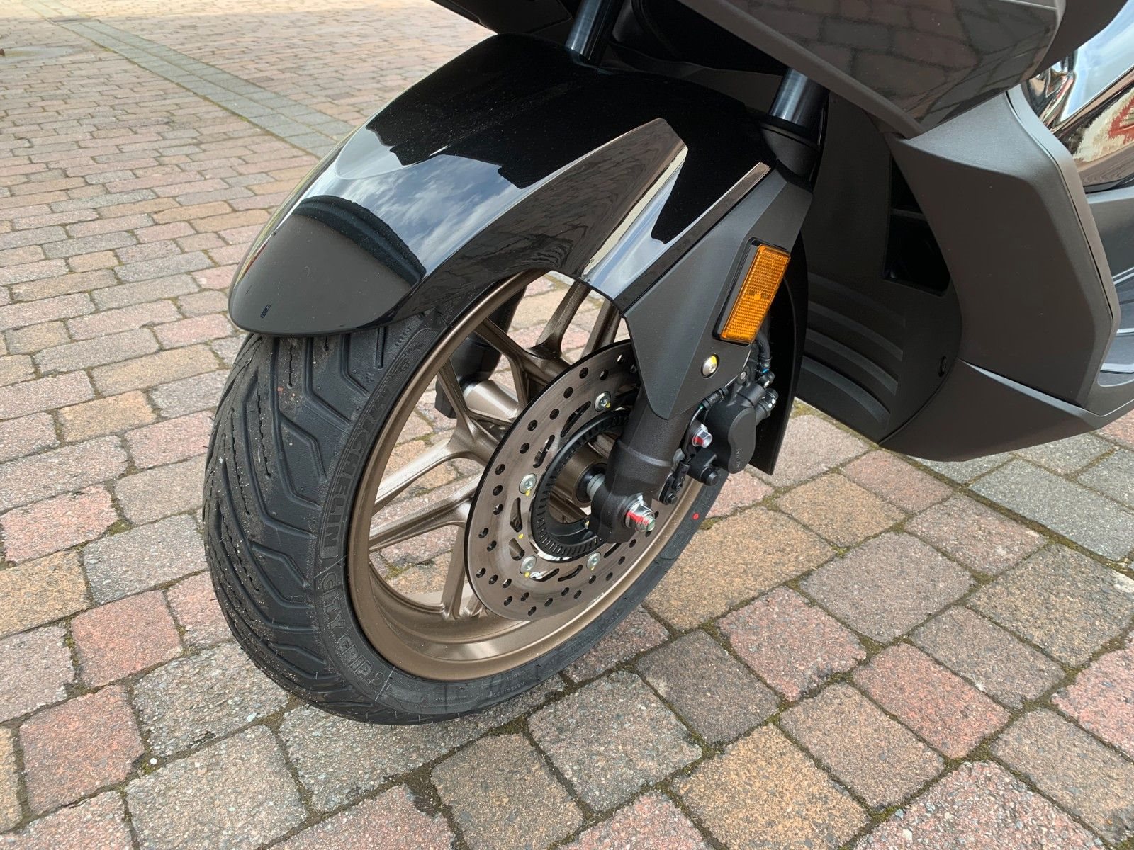 Der Roller begeistert mit sparsamen Motor, beleuchtetem Underseat-Staufach mit USB-C Anschluß ,